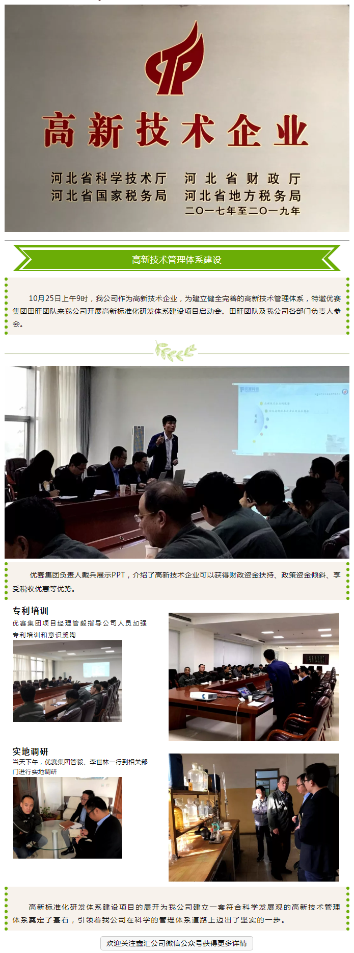 河北鑫匯:高新技術(shù)企業(yè)標準化建設(shè)與管理項目啟動