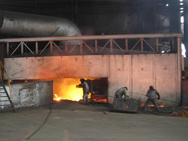 為了保證鐵水正常流動(dòng),爐前工必須不停地?cái)噭?dòng)。由于1#爐的爐前工大都是在爐前工作了多年,臉上的皮膚早已磨煉得適應(yīng)了這里的高溫。鐵水的溫度高達(dá)1470多度,在鐵口鉤殘?jiān)F鉤距離鐵水不過(guò)一兩米的距離,腳下踩的耐火磚溫度在200度以上,面前熱度也有200度左右。一個(gè)鐵水罐快要灌滿了,一位爐前工來(lái)到鐵水罐窺視孔,查看鐵水罐中鐵水的情況,鐵水安全放滿罐后,爐前會(huì)及時(shí)將鐵水放至另一鐵水罐。大約過(guò)了60多分鐘,鐵口處火花噴濺,渣鐵已經(jīng)出凈。隨后指揮鐵口工操縱液壓泥炮,將鐵口堵住,一爐鐵就此結(jié)束。“爐前工不比其他崗位,我們是一個(gè)團(tuán)隊(duì),只有每一個(gè)工序做到位、不出錯(cuò),才能出好鐵,單靠一個(gè)人是完不成的。”高爐車間主任說(shuō)。